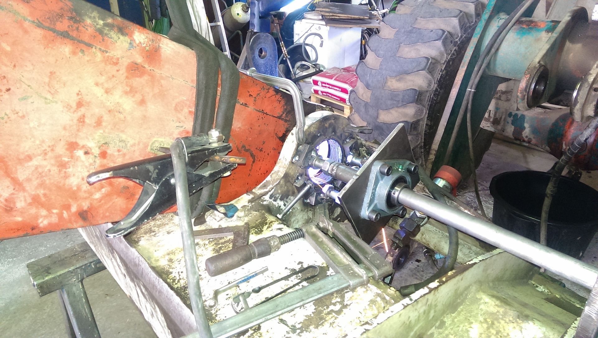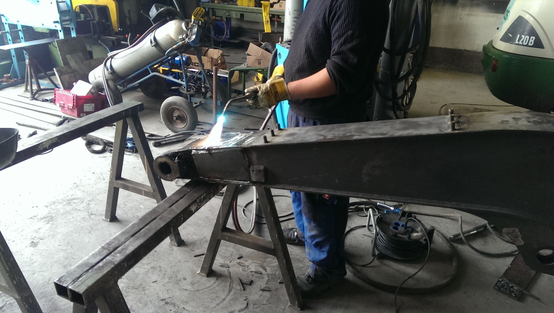 Schweißarbeiten an Anbauteilen und Baumaschinen.